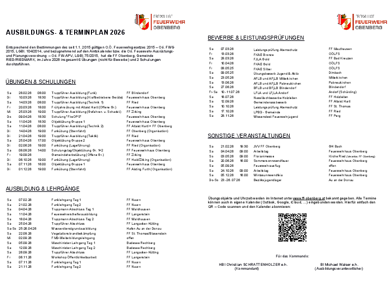| 03.05.2026 | Florianimesse | Ried (Verantwortlich FF Obenberg) |